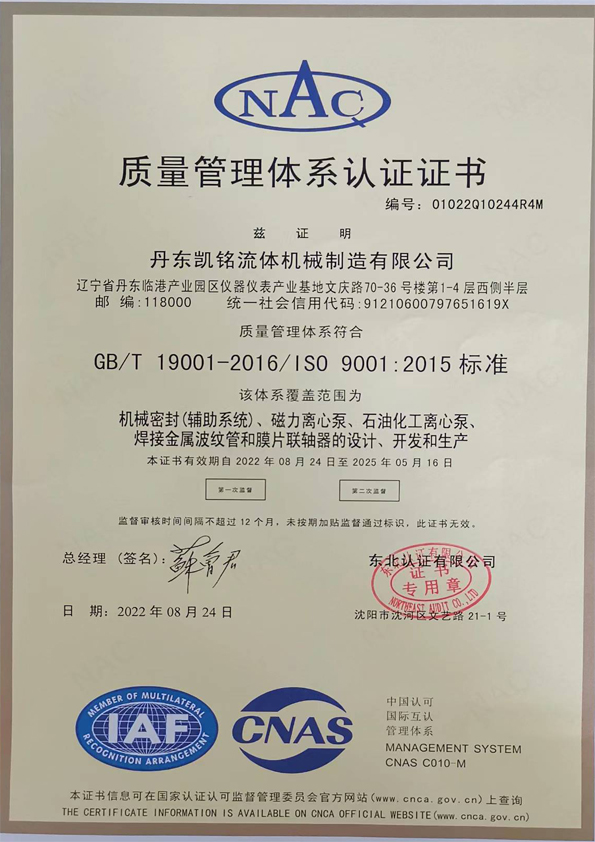 丹東凱銘流體機械制造有限公司坐落于風景旖旎的邊境江城---遼寧丹東,是一家集設計、制造、銷售、服務于一體的流體機械專業(yè)制造公司,主要產(chǎn)品有:機械密封及輔助系統(tǒng)、膜片聯(lián)軸器、焊接金屬波紋管、泵及壓縮機配件。產(chǎn)品廣泛應用于石油煉制、化工、電力、冶金、食品、制藥、印染、煤礦、船舶制造等領域。